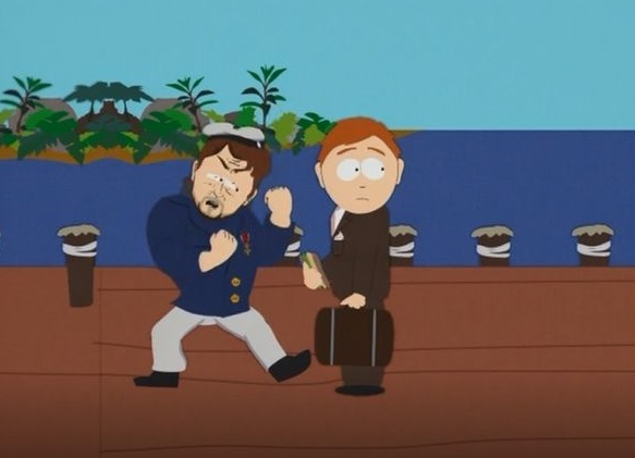 一方その喧嘩っ早さからサウスパークでは「ラッセル・クロウの世界ケンカ紀行」(The New Terrance and Phillip Movie Trailer)というエピソードが作られるほど
